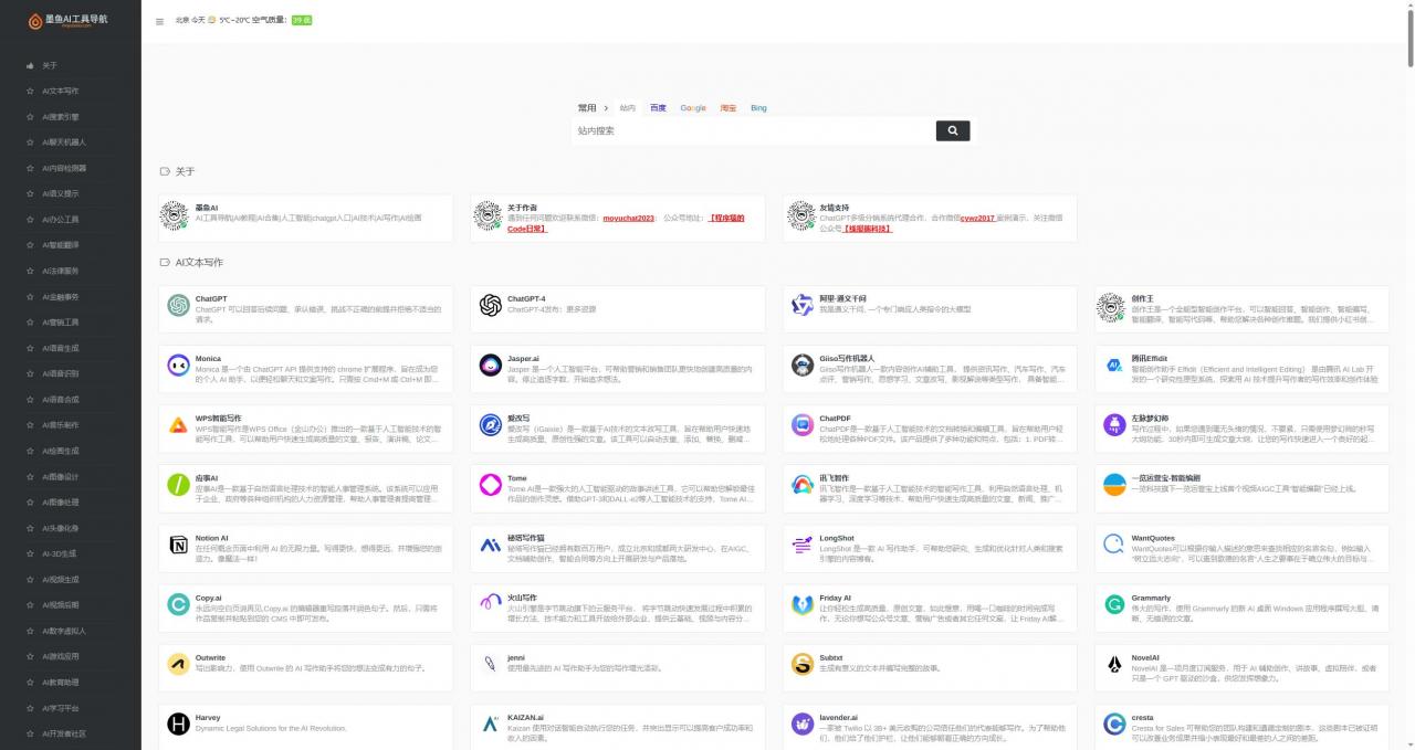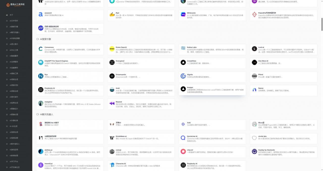 墨鱼AI导航系统,涵盖国内外500+AI工具集合精选网站,覆盖AI写作工具、AI图像工具、AI视频工具、AI音频工具、AI编程工具、AI音乐工具、AI设计工具、AI对话工具等AI工具全类,以及AI学习开发的常用网站、框架和模型