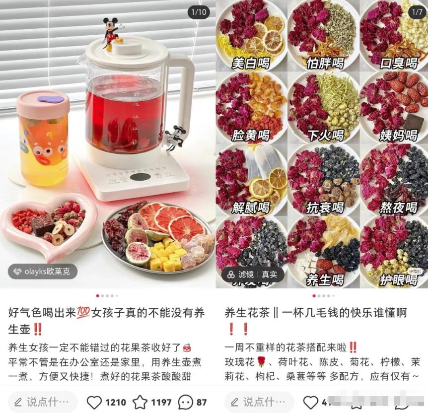 前几天也在偶然刷到的一个项目,卖养生茶,而且有很多销量都很不错,现代的人都比较注重养生,所以养生壶必不可少,这个项目以前在视频号上看到很多,因为视频号的受众人群年龄偏大一些,但是搬到小红薯上其实一样可以做。