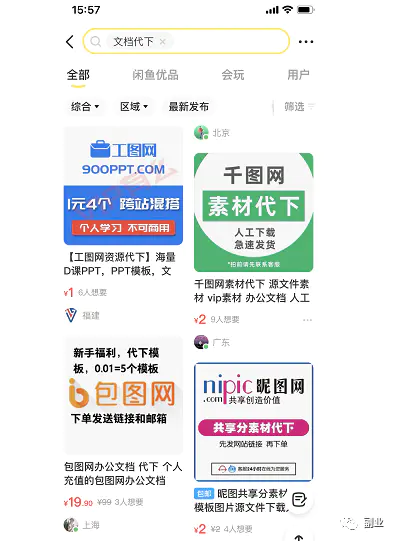 除了短视频,代下这个虚拟产品可以直接挂闲鱼,也是一个很好的流量来源!不光有文档代下载,也有设计需要的图片素材,这块做设计的朋友需求多。