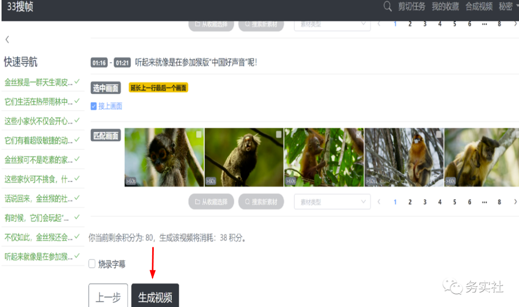 这里需要注意下,视频内容会根据我们提供的文案匹配画面,工具会筛选很多视频供我们选择,只要我们选择好相应画面,全部整合后就可以直接生成完整视频了!