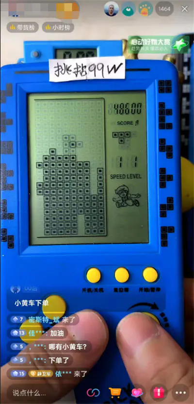 此时的直播间超出了一开始的流量,已经达到1400多在线人数。看评论都是怎么下单,小黄车在哪里,太多精准用户要买。而且这种游戏本身简单,想持续打方块,可以一直拉长时间来吸入新流量,直播也无需露脸和需要能说会道。