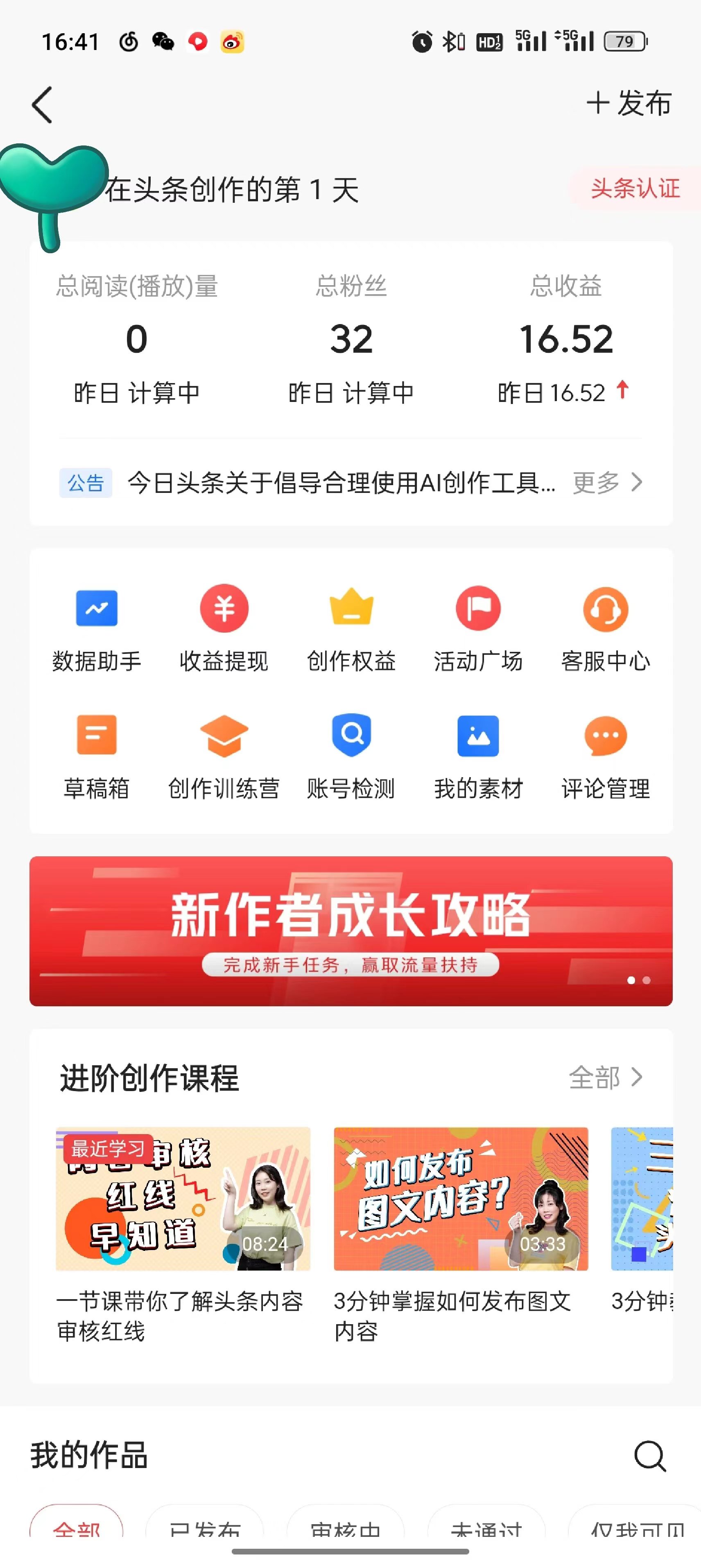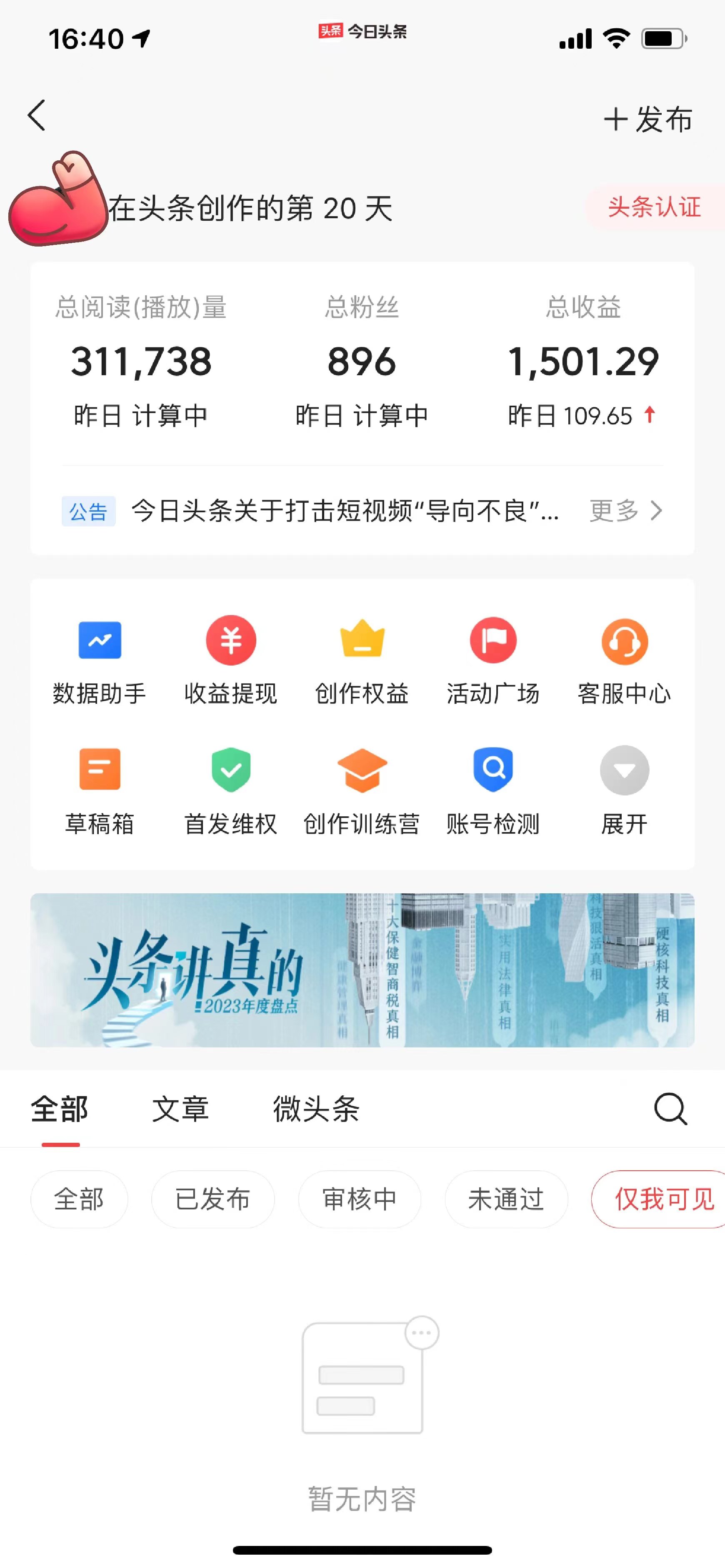 通过微博的最新热点,用ai我给你们的指令去生成自己的文章,从而获得一个曝光,用户阅读之后会产生一个收益,每周4就可以体现到自己的账户