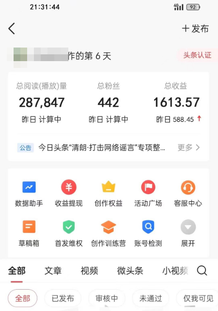 今日头条具有卓越的数据分析和定位能力,也就是大数据分析能力,可以分析出用户喜欢的内容,那就意味着,用户喜欢什么内容,今日头条就能够精确的将广告信息和自媒体文章推送给目标人群,如今,AI 技术已然成为全民皆可共享的工具,这个项目就是根据今日头条的这个特性,然后去用AI软件利用指令生成一篇相对应的文章去发布,他就能推给正确的人群当中,有了人群,那阅读和评论自然不会少,有了阅读,那我们就能获取相应的收益了