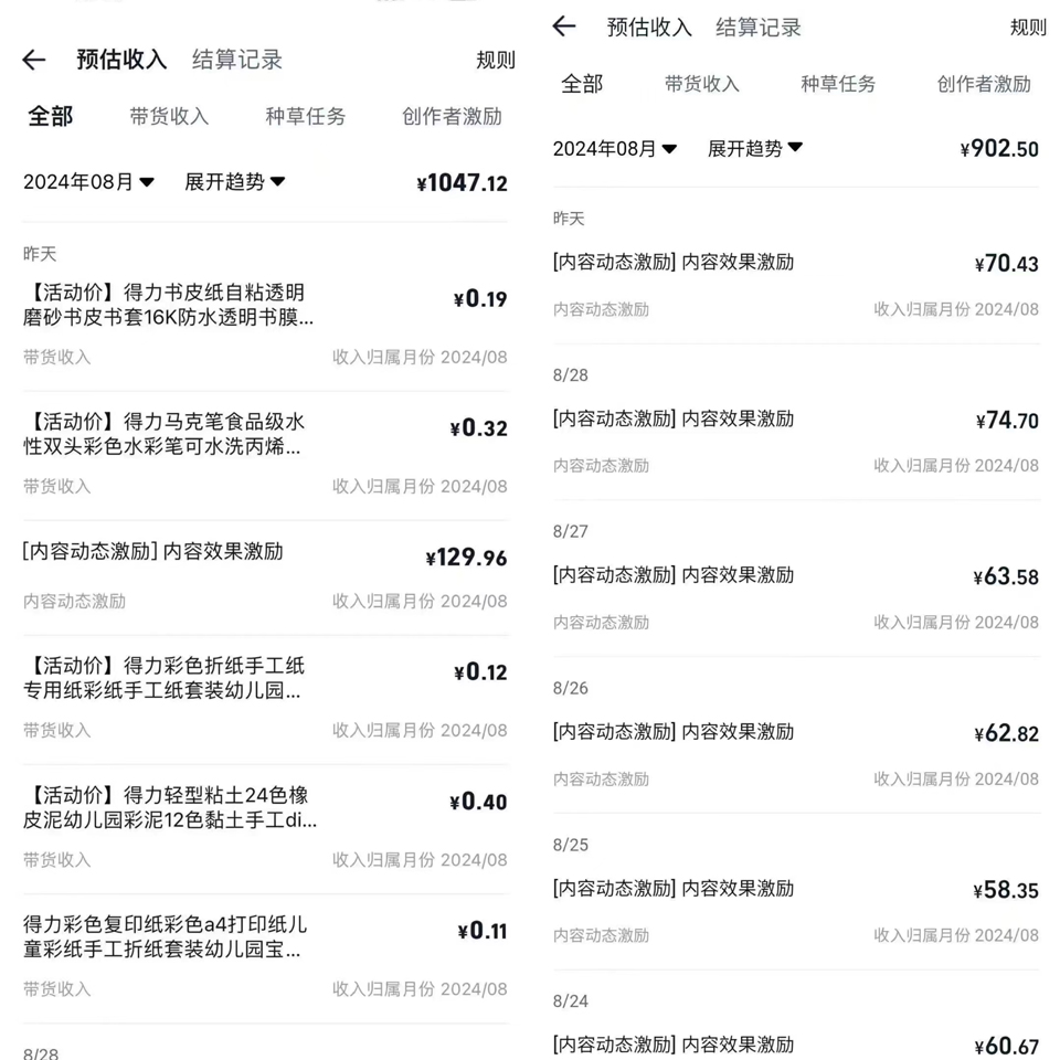 3、平台初期对创作者监管力度不大,视频简单去重搬运就行,一个账号一天3位数很轻松,月入1万+