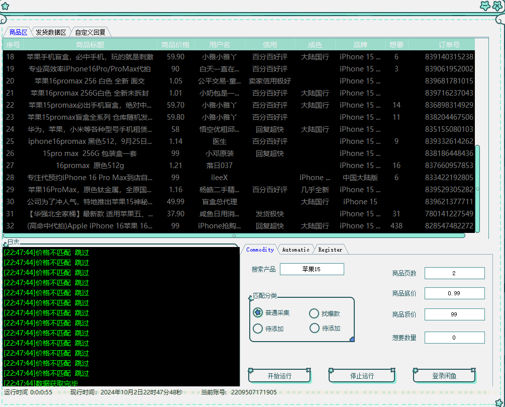 闲鱼助手采集关键词商品,然后可以一键转卖,自动发货自动回复等多功能助手