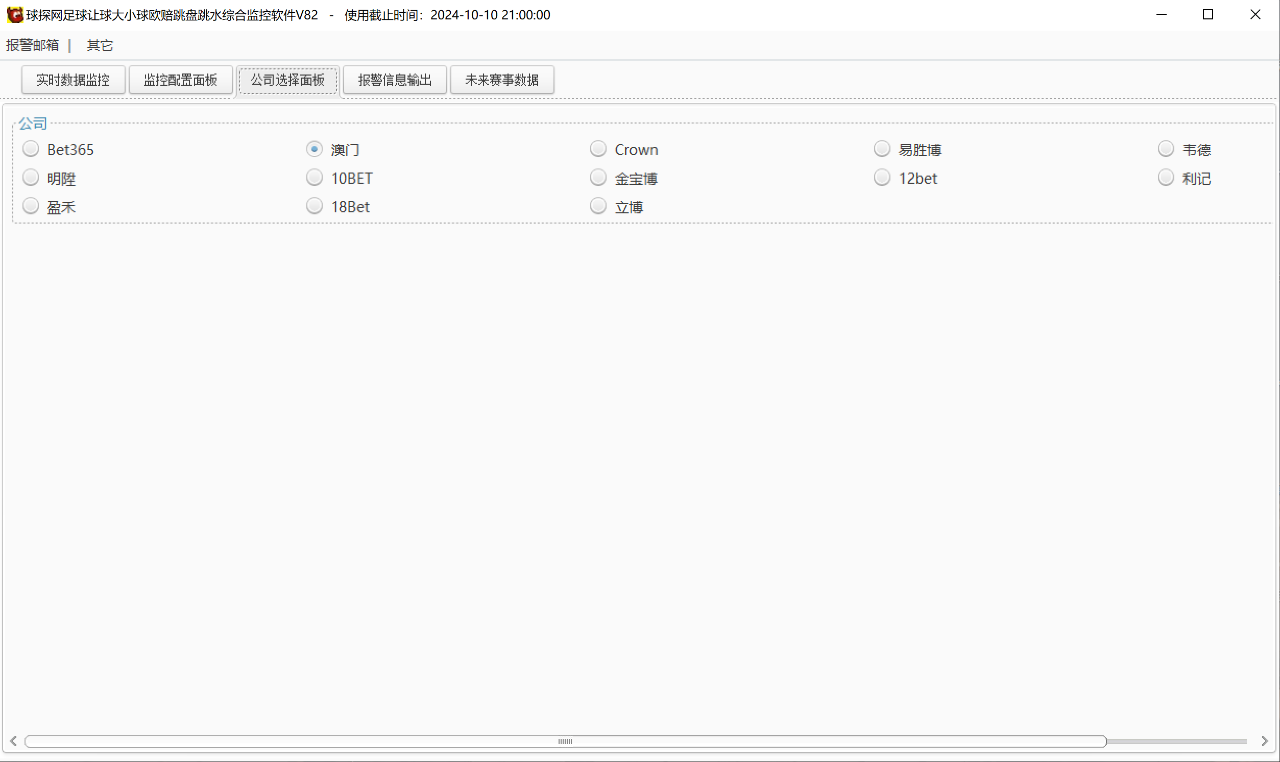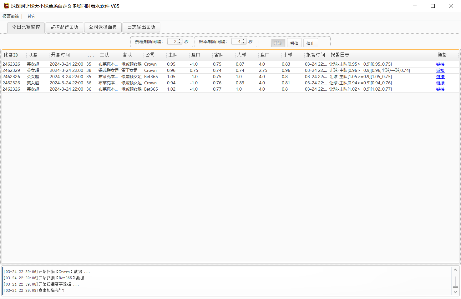 用户可以根据需求自定义单场比赛的监控时长,这意味着在不同的时间窗口内,软件会自动显示指定场次的水位变化情况,帮助用户聚焦特定比赛、特定时段的数据,分析比赛走势。