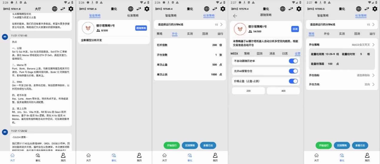 4、 自动化交易:绑定交易所API,目前对接了WEEX平台,后继会更新对接上更多的平台,24小时全自动检测,不让你错过每一个可以交易的机会