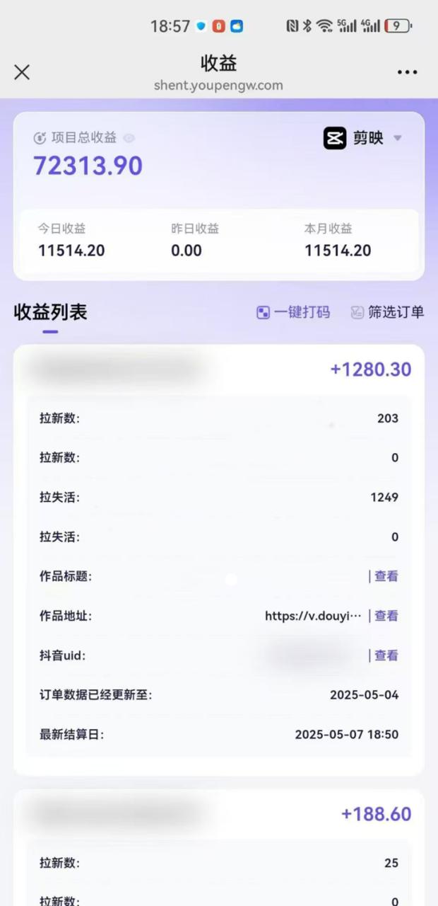 项目介绍:2025剪映拉新拉失活项目,单日收益可破10000+,用AI无脑操作几分钟产一条作品, 官方链路平台,不扣量,用AI做视频,操作简单,账号申请权限后通过抖音平台发布作品,用户通过我们作品链接下载APP就有收益,已下载的用户通过我们作品链接激活APP算拉失活,也有收益。