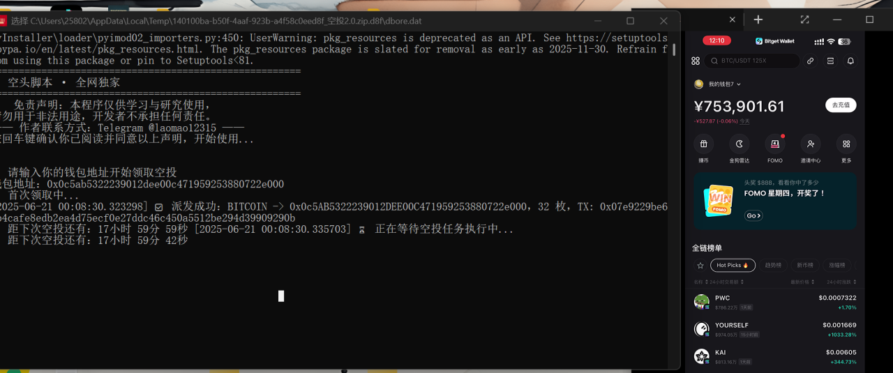 系统自动检索空投地址,自动执行网站任务,自动执行任务派发钱包,比如关注群组,社群等任务